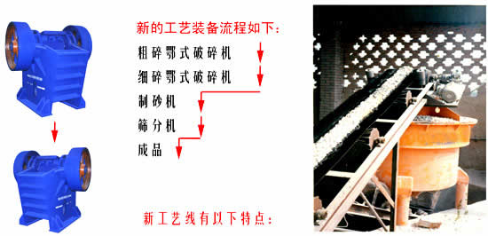 4、新工藝線產品細粉含量符合浮法玻璃生產工藝要求,新工藝線可用于砂巖、石英巖、硅石、長石的破碎,在碎玻璃的再破碎上也取得了很理想的效果。