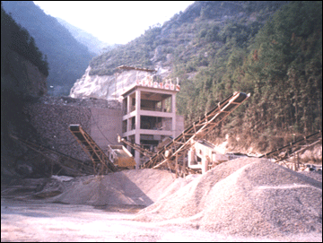 首先,石料由給料機(jī)均勻地送進(jìn)粗碎機(jī)進(jìn)行初步破碎,然后,產(chǎn)成的粗料由皮帶輸送機(jī)輸送至反擊式破碎機(jī)進(jìn)行進(jìn)一步破碎,細(xì)碎后的石料進(jìn)振動(dòng)篩篩分出不同規(guī)格的石子,不滿(mǎn)足粒度要求的石子返料進(jìn)